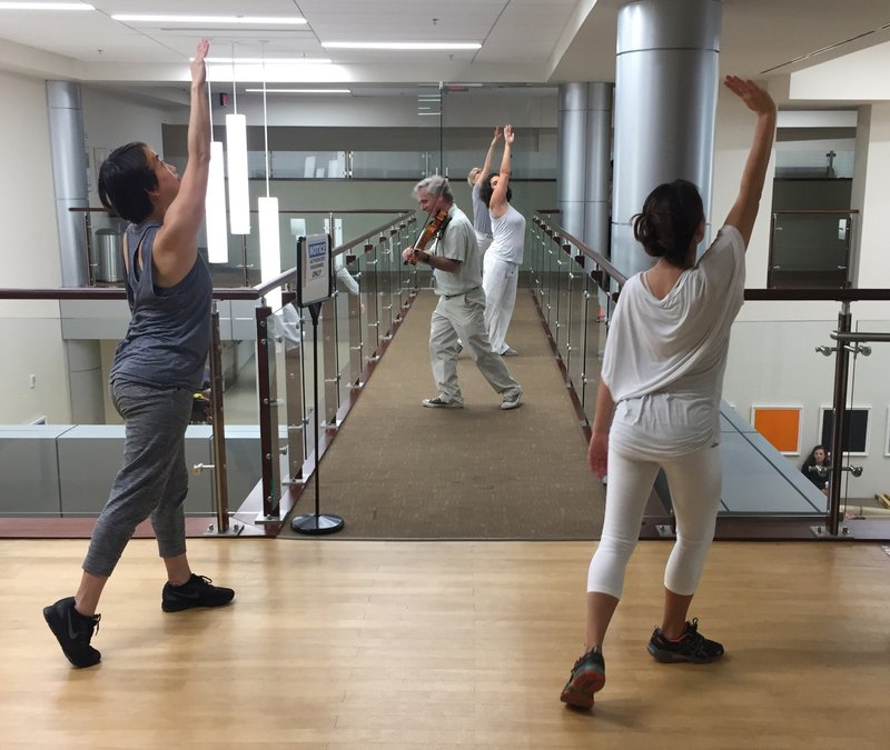 Reference 10: https://www.apnews.com/895c5b00f554466894d1d50a851ef5ec. An Associated Press article which talks, inter alia, about Jangraw’s work with Fleming. Also the source of the snap above in which we have violinist Anthony Hyatt leading dancers through MedStar Georgetown University Hospital in Washington on Oct. 11, 2017. The musicians and dancers are part of the Georgetown Lombardi Comprehensive Cancer Center's arts and humanities program.
