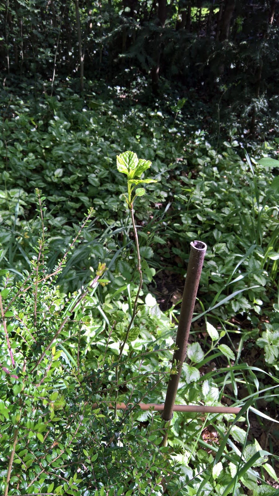 About five years ago a chap from the RHS identified a seedling on the edge of our back hedge as a fraxinus excelsior f. diversifolia. This was noticed at reference 1. Later that year, I cut it down by accident, but was pleased to be able to report the following year at reference 2 that it had sprouted from the stump.