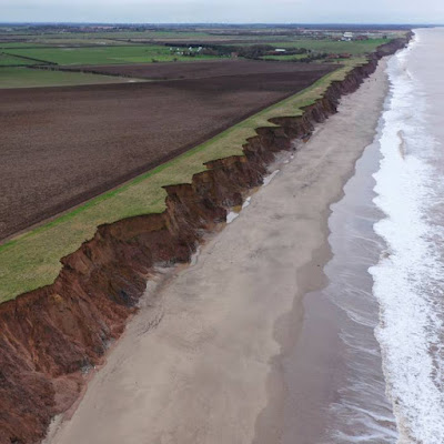 One of a number of striking images from a piece about coastal erosion in the Financial Times. This one captioned: England’s east coast is particularly at risk of erosion because it is made up of soft clay and sand © Christopher Furlong/Getty.